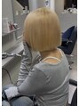 いつも来てくださっているお客様/ピンクや紫のカラーをしていましたがブリーチしてブロンドヘアに/毛先を整えてボブカットもさせていただきました