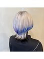 ウルフヘアにホワイト×ブラックのベースに表面の毛先にパープル×ブルーのエンドカラーの欲張りデザイン!