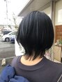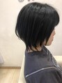 ショートウルフスタイル。伸ばしかけの方や普通のショートに飽きた方にオススメ。カラーはブルーブラックでクールな印象に!