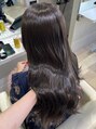 艶感たっぷりブルーブラックです!お仕事で暗くしなきゃいけない、暗めカラーが好きという方におすすめです!光に当たるとほんのりブルーのカラーが透けて綺麗に見えます♪Aujuaトリートメントを一緒におこなうことで艶感色持ちアップします♪