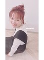 ゆるふわお団子アレンジ えりあしは編み込んで 肩下切りっぱなしロブ カラーはピンク系マニキュア混ぜています。