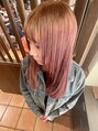 ブラウンルーツで毛先ピンクのデザインカラー