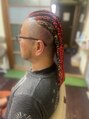ラスタカラーが、とても楽しませてくれますね!こちらは、アシンメトリーのヘアスタイルです。これから、汗ばむ季節ですが、氷冷グッツや、メンソール系のドライシャンプーで、乗り切っていきましょう!!