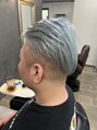 サイドとバックはアシンメトリーに2ミリのほぼモヒカンスタイル☆バックに流れる長さをトップに残しました。笑顔が素敵です♪カラーは1度ブリーチで脱色後シルバーアッシュをオン!!白髪が多い方でも明るいお色にチャレンジ出来ます☆
