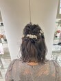 短めボブでも華やかに!ふわふわハーフアップ トップにボリュームを出して、パールアクセで上品に。結婚式やお呼ばれにもぴったりな大人可愛いスタイルです♪