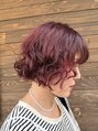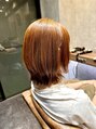 - ブリーチなしで、カラーで明るくして赤みを入れてます。くびれのあるショートボブ!