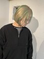 ペールグリーンのブラックカラーデザインカラー/ハイトーン/ペールカラー/抜きっぱなし/ブリーチカラー/ホワイトカラー/ピンクカラー/グリーンカラー/ルーツカラー /ケアブリーチ/ボブカット/前髪カット/レイヤーカット/ハッシュカット