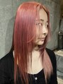 ブリーチ1からブリーチ1~2回で春っぽかわいい*コーラルピンクに(>u<***)のばし途中の前髪も軽く巻くことで、こなれ感のある印象にできます!
