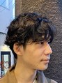 もみあげと襟足はスッキリと刈り上げ2ブロックスタイルに。マッシュのベースカットに、ランダムな柔らかいパーマをかけて無造作に決まるスタイルに。スタイリングはムースとワックスでラフに。