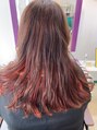 インナーカラーを赤、表面はブラウンで染めてます。まとまり重視のカットスタイルです
