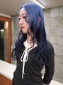 青カラー ルーツカラー ブルーカラー 赤髪 ロングヘア