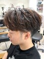 ニュアンスパーマをかけて毛流れが綺麗に見えるようにしています。カットではセンター分けにもでき、自由自在に色んなスタイルが出来るようしています。