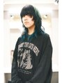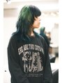 ブリーチ1回でつくる青×緑×黒のデザインカラー○もともと、赤系の残留がブリーチ後も残っていたのですが、その色味もデザインとしてポイントでのこしました○フロントの黒は残留しないようにカラーしてます!