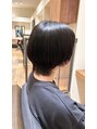 襟足をスッキリさせながらも、丸みのある綺麗な形にカットしています。膨らむサイドは抑えて、潰れるバックにボリュームをだすと理想の形になります。