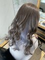 地毛や明るめの茶髪から目安2、3回のブリーチでベースをしっかり明るくしたインナー部分にシルバーっぽい青紫のカラーを入れて、表面はなるべく赤みや黄みを抑えたアッシュグレーで仕上げました♪