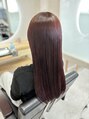 ブリーチなしのワインレッドカラー学生さん大人気です!髪質改善トリートメント込みクーポンです ¥13,500~