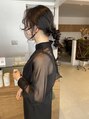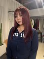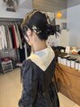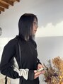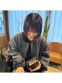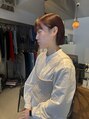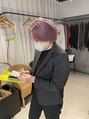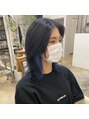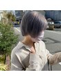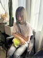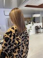 伸びた部分をリタッチして、その上から淡いブルー系の色をオンカラーしました!色落ちも、次のカラーに影響がないように綺麗にブロンドに落ちるように調合しました◎