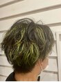 ランダムにブリーチで色を抜いたデザインショートカラーです。他の方と少し違うスタイルがお好きな方におすすめです。
