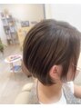 襟足はすっきりと首元に添わせ、後頭部にころんと丸みを持たせたコンパクトなショートボブ。手ぐしでドライするだけでナチュラルにまとまり、首元がすっきり見えて柔らかな印象に *