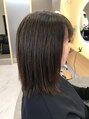 肩レングスにロ一レイヤーを入れて、フェイスラインはリップラインからレイヤーを入れていきます。矯正毛でもできるだけ軽い感じに見せます。