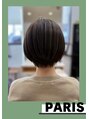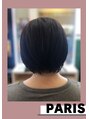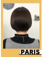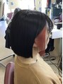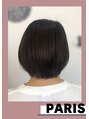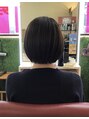 暗めの茶色で、艶のある上品なカラーに。カットはロングからばっさりショートボブに仕上げました。毛先をワンカールしても耳にかけてもかわいいです☆