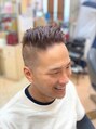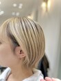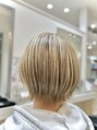 耳にかけてタイトに見せるミニボブです。首が出る長さ、襟足ジャストの長さになっています。日頃のスタイリングは、全体をクシでといて、アイロンで毛先だけ外ハネさせて、最後にバームかワックスを付けてタイトに手櫛を入れたら完成。