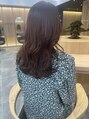 ピンクブラウンで軽さと柔らかさが出るロングレイヤースタイル。明るめのピンクブラウンで軽さと柔らかさが出るので多毛さんや、硬毛さんにおすすめのカラーです。コテで巻いた時に動きが出るようにレイヤーを入れ、軽やかな印象に。