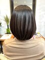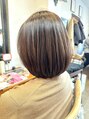 肩上でまとまる長さにカットをさせていただき、オーガニックカラーのベージュ系でお肌馴染みの良いようにお染めしております。