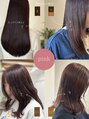 ピンクカラー/小さい長方形の中にかいてある数字が染める前の髪色のトーンです/矢印の向いた先、写真の上に書いてある数字が仕上がりの髪色のトーンです