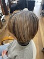 白髪をぼかして目立たなくするために、細かいハイライトを入れて全体を明るいくすみベージュでカラーリング☆