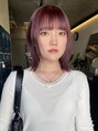 ワンブリーチでできるくすみレッドカラー。パキッとしすぎずハイトーンに飽きた方、こんな可愛い色いかがでしょうか??ボブのラインも変えたい方、表面にレイヤー入れて少し軽い質感に。顔まわりに沿ってレイヤー入れると小顔効果も抜群◎