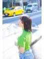 外ハネとグリーンのアイシャドウで爽やかな印象に。