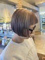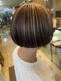 ボブベースのカットラインに表面ワンパネルだけハイライトのデザインを加えてみました。その日の毛流れによってハイライトの見え方が変えられる楽しみがあるスタイルです。