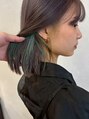 インナーカラーグリーン×ブリーチカラーグレージュ*ミディアム/ホットペッパービューティー