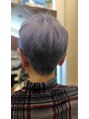 グレイヘアを活かした薄い紫のマニキュアでおしゃれショートヘアです。グレイヘアだからこそできる薄い色のマニキュア。カラーでは長く楽しめませんが、マニキュアなら長持ちします。