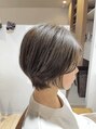 大人かわいい前下がりのショートボブはシャープに切ったライン、襟足をしめてスッキリ見せたりと、メリハリを効かせて絶妙なバランスに!ハイトーンカラーはシークレットハイライトで束感、質感をプラスしてくすみカラーのアッシュベージュを!