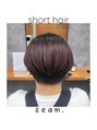 サイドはツーブロック、後ろは刈り上げでコンパクトに見えるようなショートです。お客様のお好みの赤系カラーでよりおしゃれに見えますね。後ろに流すように乾かして、オイルをつければおしまいです。