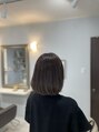 透け感のあるオリーブグリーン。ブリーチ無しでのハイトーンカラーです♪「白髪を染めたい!」というご希望のあるお客様なので、根本は白髪が目立たなくなる薬剤で、中間~毛先は薬剤を変えて『明るさ・白髪染め・透明感』を実現しています!