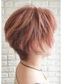 ショートレイヤー。明るいイノアカラーとハイライト、イヤリングカラーの組み合わせ。メタルDX で前処理、後処理にケラスターゼカクテルトリートメント施術。明るく立体的なスタイルに。