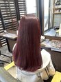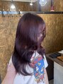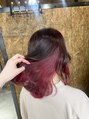 深みのあるピンクレッドにポイントで前髪とお顔周りにブラックをいれました♪個性的なデザインもかわいいです。ブリーチなしでできますが暗めのベースの方はブリーチなしWカラーが近づきやすくおすすめです◎