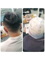 キャップハイライト+シャドールーツ(シルバー)+フェードカット+マンバン+おろすとおしゃれなショート