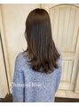 美髪に見えるチャコールブルー。艶々のセミロングレイヤースタイルです。