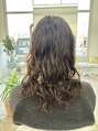 全体に柔らかなウェーブで立体的なシルエットのスパイラルパーマです。おろしてアンニュイな雰囲気、結んでもオシャレな印象。ハーフドライにムースとバームを揉み込むだけの簡単スタイリングです。お客様の個性を活かしたスタイルをモットーとしています。