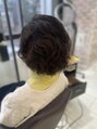 少し長めのショートボブスタイルにパーマふんわり動きをだしています