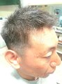 フェードのショートカット。顔が大きく見えないように、刈上げのバリカンの角度を計算して入れてます。