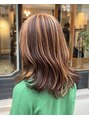 アンブレラ風で一癖きいたデザインカラーに◎色は暖かみのあるブラウンと、ベージュ系カラーにしました♪ブリーチはケアブリーチに変更してダメージレスに!+アメージアトリートメントで保湿とケアをしっかりしていますのでツヤサラな髪に◎