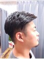 サイドからバックにかけて刈り上げてグリースで根元を立ち上げながらサイドにつなげました。
