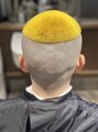 周りを0ミリでスッキリさせ、ブリーチとオンカラーでイエロー色強めの色に簡単スタイリング、短髪が好きな方におすすめのスタイルです!<吉祥寺><バーバー><理容室><メンズカット><フェード><ブリーチ><ヘアカラー><ボウズ>