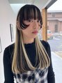 ぱつっと前髪と顔まわりレイヤーで個性をプラス。ブリーチハイライトを効かせたストレートロングで魅せる、抜け感モードスタイル。