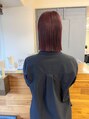 ラインを残したミニマルな切りっぱなしボブ。赤みのあるピンクカラーでツヤと女性らしさをプラス。ストレートでモードに、巻いてカジュアルにも楽しめる万能スタイルです◎